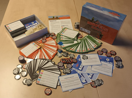 Roofers Rally is a team quiz board game that covers various aspects of the roofing profession. The 696 questions are divided into six themes directly aligned with the key activities of the job profile established by the Francophone Service for Trades and Qualifications: